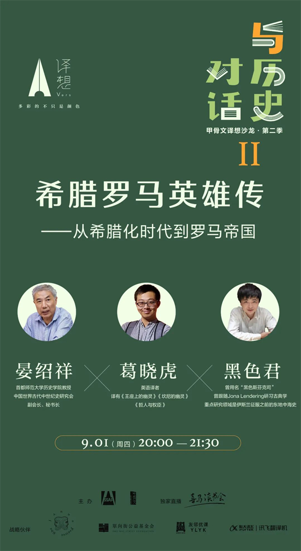 甲骨文译想沙龙·第二季第二场,邀请晏绍祥、葛晓虎、黑色君三位嘉宾,谈谈希腊罗马的历史。