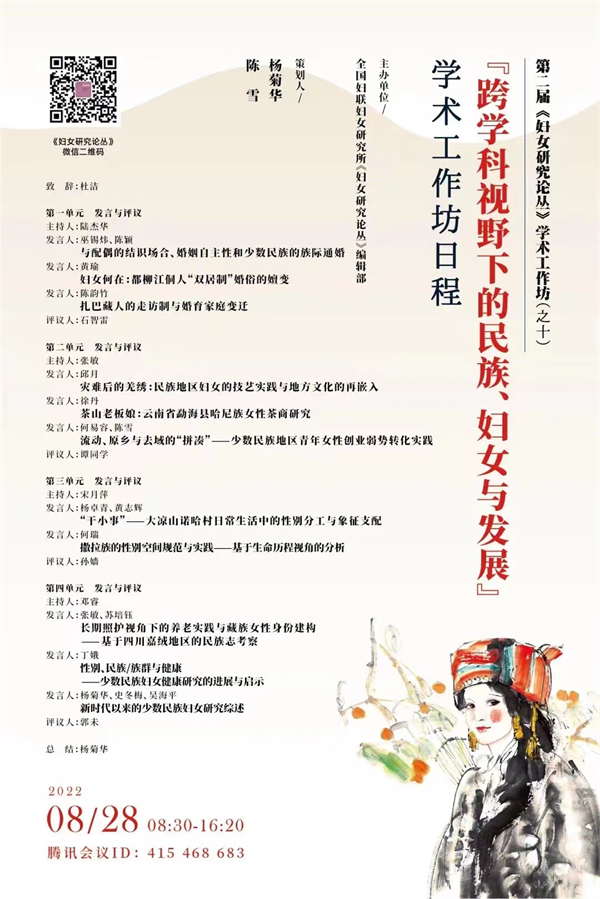 此次学术工作坊,与会学者们将分别就少数民族的族际通婚、婚俗的嬗变、扎巴藏人的走访制与婚育家庭变迁、少数民族地区青年女性创业弱势转化实践等主题进行探讨。