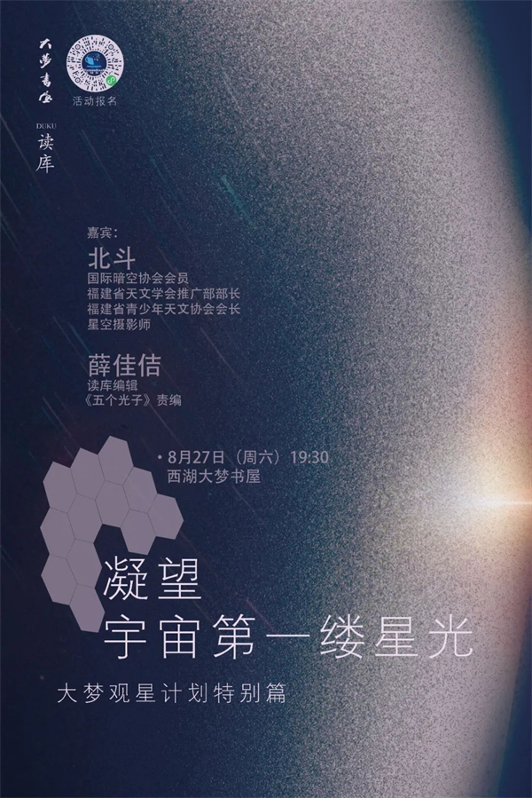 嘉宾:北斗(福建天文学会推广部部长、星空摄影师)、薛佳佶(图书编辑)