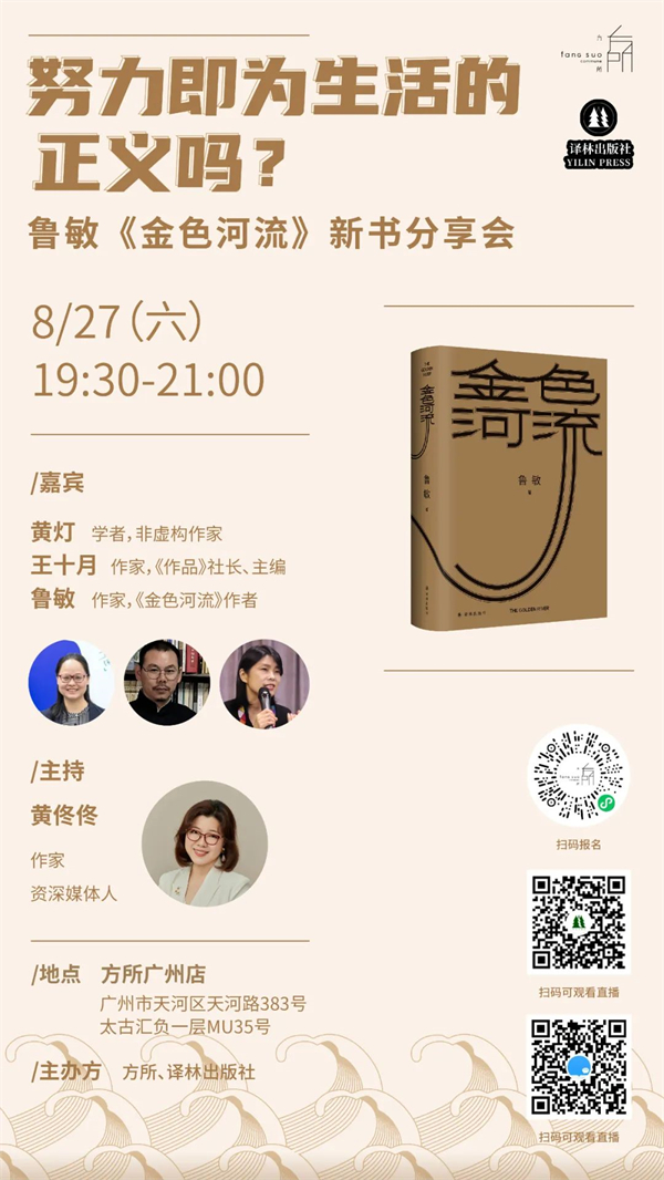 广州|努力即为生活的正义吗?——鲁敏《金色河流》新书分享会