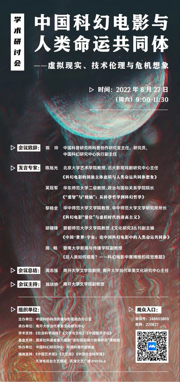 南开大学当代审美文化研究中心主办的此次学术研讨会,邀请了国内多位学者,从科幻电影出发,探讨人类命运共同体。