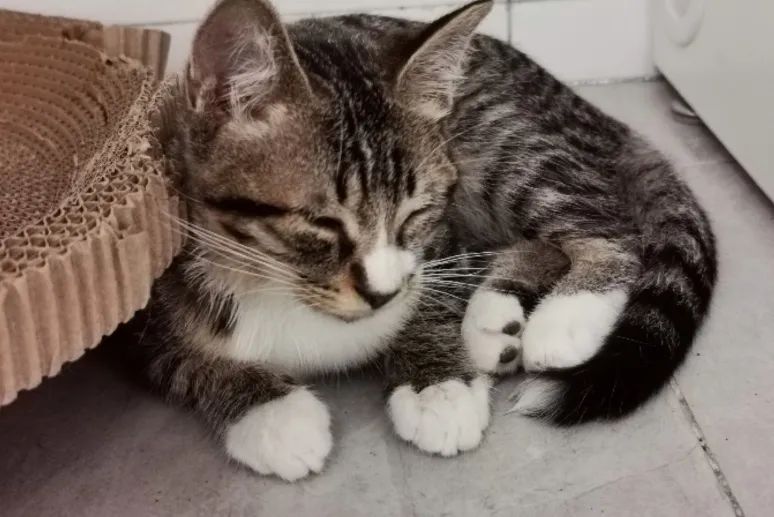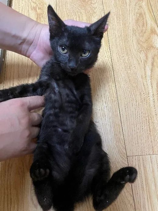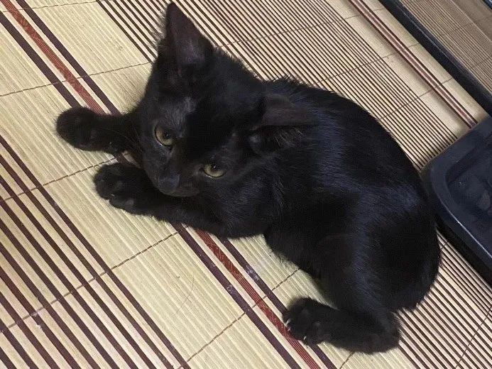 下班路过小区门口,听到有小奶猫叫声,最后在车底下发现了三只依偎在一起的小奶猫(两只小黑、一只狸花),小小脏脏的,等了好久没有母猫过来,怕他们饿死就带回了家;捡回家称体重大概只有0.5kg,喂了一周的奶粉加罐头,感觉状态好了很多、就做了驱虫和连续几天清理耳螨,又带去医院打了第一针妙三多;目前养了快一个月,体重都上来了,无猫藓耳螨,健康活泼,会用猫砂,吃猫粮;会主动亲人。