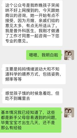 马医生写在后面的话:哈哈哈,文章中的这位咨询师就是我,很开心陪着这对新手爸妈度过了产后最感无力的几天。