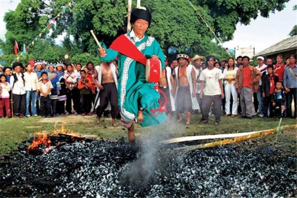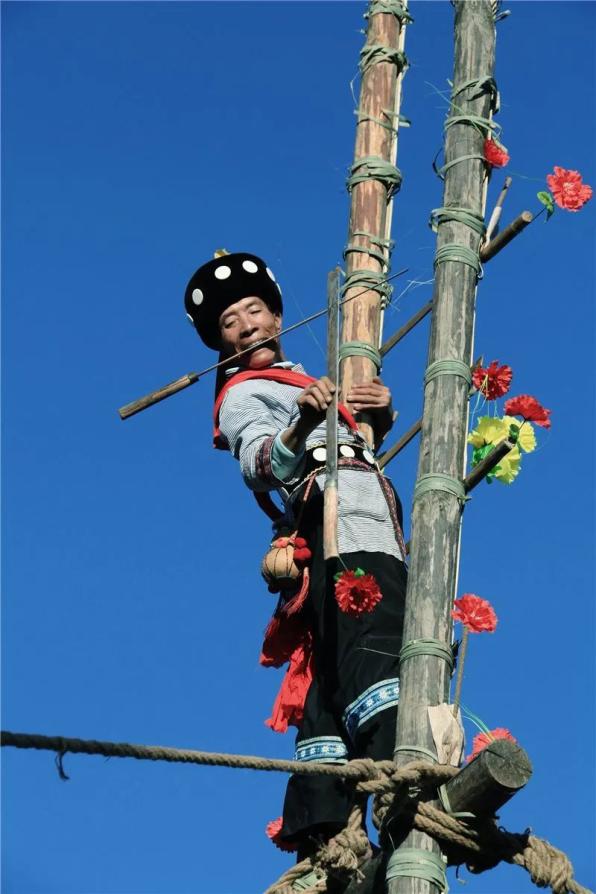在日常生活中,人们常把敢于“上刀山,下火海”者视为勇士。而现实生活中,“上刀山,下火海”是傈僳族人庆祝刀杆节的重要仪式。