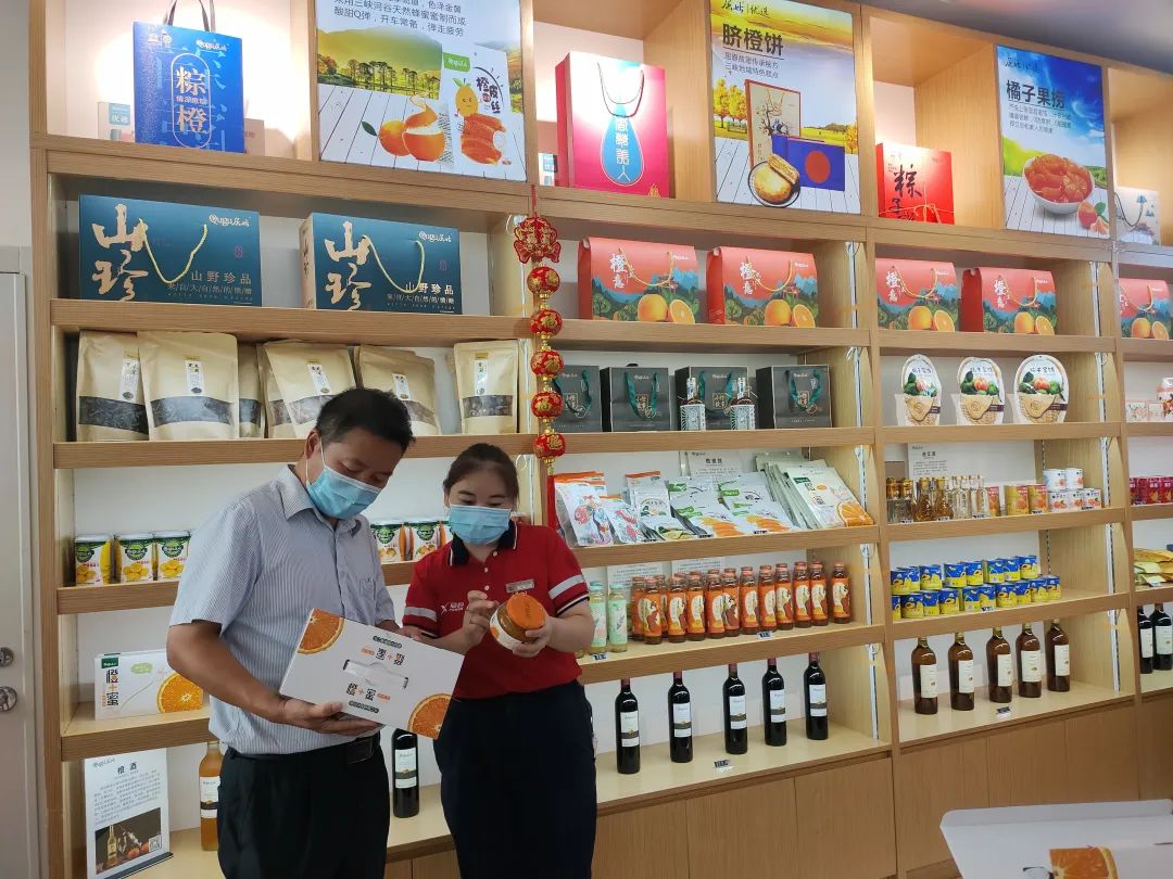 屈姑集团原本以出口生意为主,2020年疫情后,他们将目光更多转向国内市场,与易捷的合作更加紧密。屈姑集团生产的脐橙醋、脐橙饮料、脐橙粽、脐橙月饼、水果罐头等产品相继进入易捷便利店。秭归脐橙全产业链产品通过中国石化的易捷平台走向全国,累计销售秭归脐橙及相关产品近9000万元。