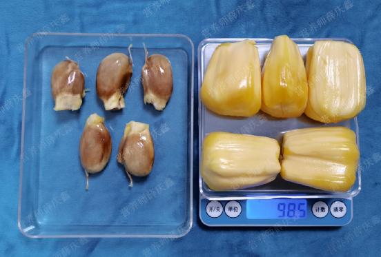 别看一个菠萝蜜个头挺大的,其实它1/3的体积都是核,也就是菠萝蜜的种子部分。很多人在吃菠萝蜜的时候,会将核直接丢掉,认为菠萝蜜的核是不能吃的。