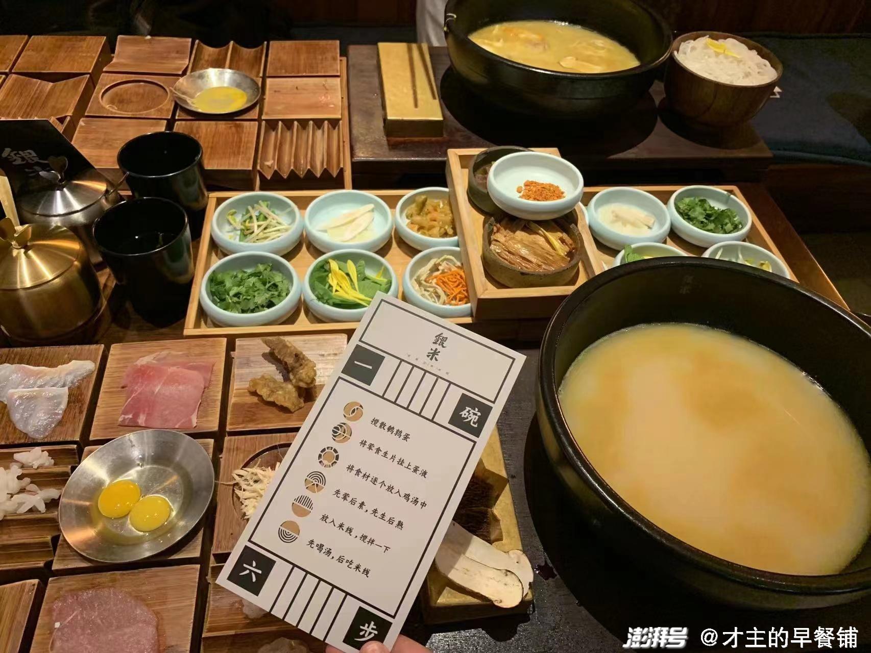 菇和肉都切得很薄,滚水一烫就熟了。汤和米线是分着装的,怕米线在汤里泡久了会坨。更特别的是煮,用石锅盛的汤刚开便端上来,不停地冒着气,咕噜咕噜地冒泡,不敢轻易地接近它。汤即上,用筷打散鹌鹑蛋,夹上一片菇或鱼片或肉片,裹满金灿的蛋液,下入锅中,便听见一声“呲啦”。说是几秒后就可以吃了,我不放心,便多泡了一会儿。先菇后肉,先生后熟地放,最后再到米线。