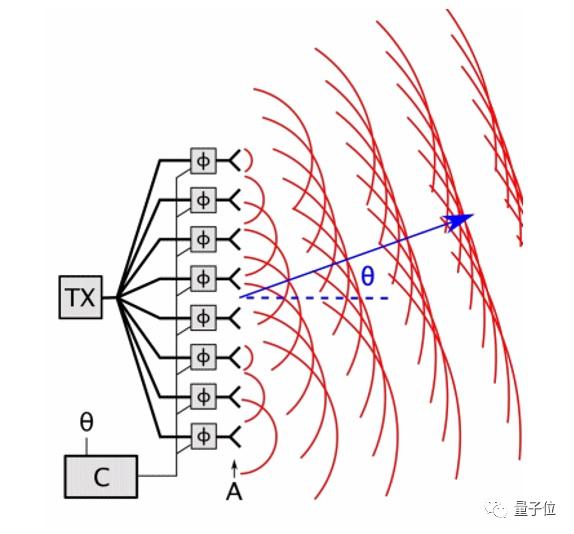 如果发出的波不完全同步,两个波纹之间就会产生相移,这时通过计算机来控制每个单元发出的电磁波的相位差,就能让波向着想要去的方向传播了。这种方式被称为电扫描,速度远高于传统雷达的机械扫描,也就是转动天线。