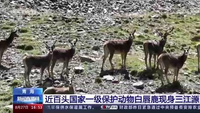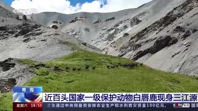 近百头国家一级保护动物白唇鹿,现身三江源!