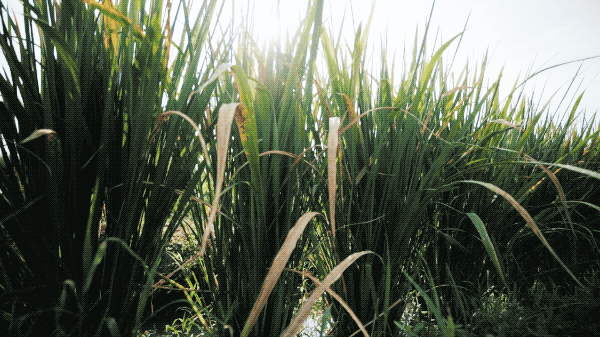 ▲张扬的田地杂草丛生,但也保持了土壤湿润,杂草下韭菜长得不错