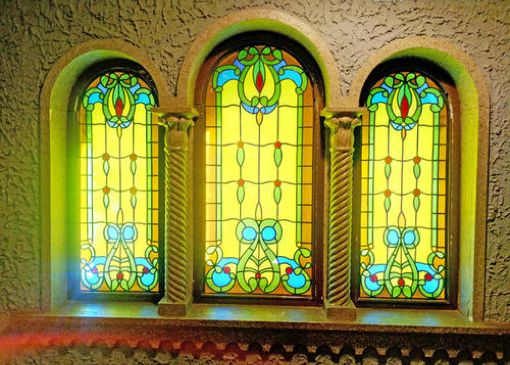 彩色玻璃花窗。是西方建筑的点睛之笔,繁复、华丽到了极致