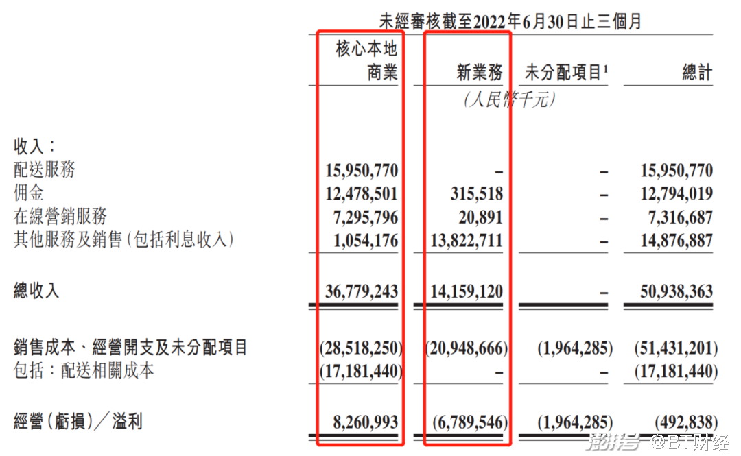 由财报可知,核心本地商业业务在二季度的营收达到367.8亿元,占总收入的72.2%,经营利润达82.6亿元,是唯一实现盈利的板块;新业务营收为141.6亿元,经营亏损67.9亿元。