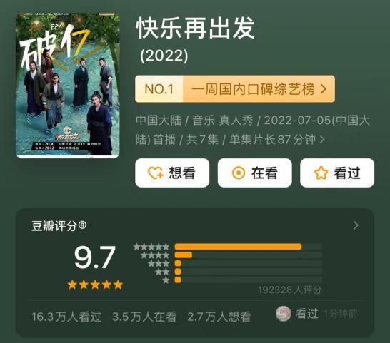 豆瓣截图从诞生历程来看,《快乐再出发》的成功绝非偶然,其思路能否成功复制,自然也值得市场持续关注。据悉,《快乐再出发》第二季已经在筹备中。事实上,在深度洞悉用户内容偏好的基础上,芒果TV打造出一条丰富的会员综艺+衍生矩阵。