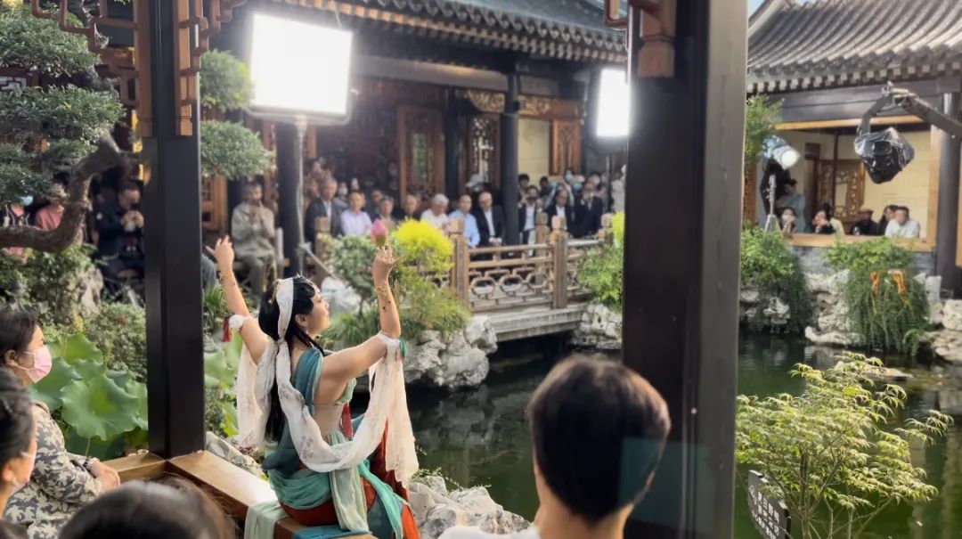 展览开幕式,以沉浸式的敦煌乐舞剧场,为大家呈现千年敦煌的“飞沙一刹”。