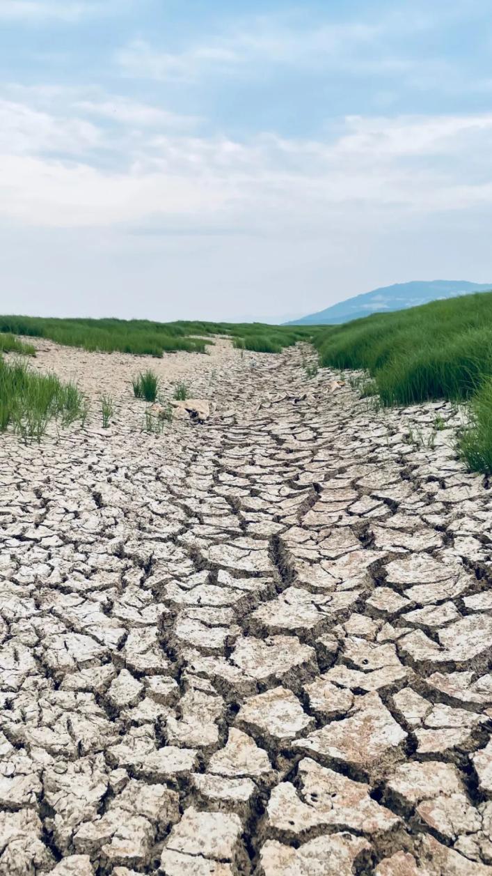 △鄱阳湖湖床草原,不时可见干涸开裂的空地与低洼 时代周报记者王晨婷摄