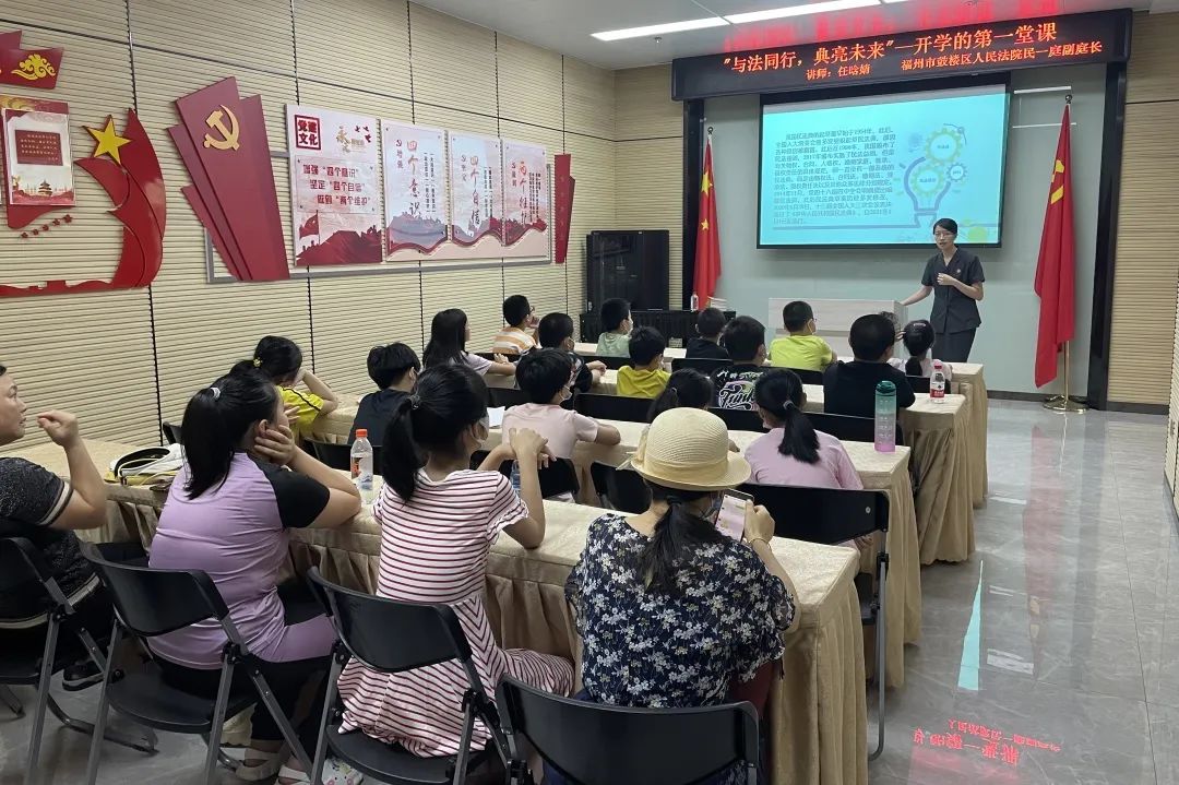 8月20日上午,鼓楼法院、区妇联、温泉街道汤边社区、三坊七巷社区学习促进会共同举办了一场“与法同行 典亮未来”送法进社区活动,任晗婧法官与社区的孩子们“零距离”接触,把民法典带进孩子们的世界。