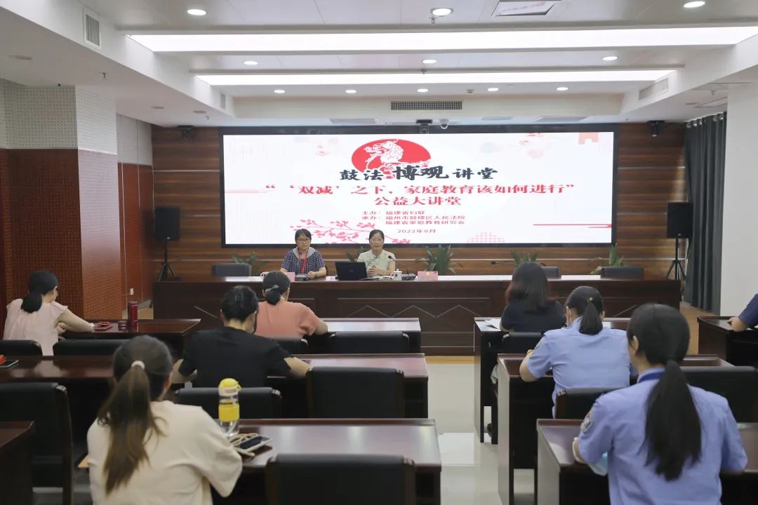 8月25日下午,由福建省妇联主办,鼓楼法院与福建省家庭教育研究会承办,“鼓法·博观讲堂”给家长们带来开学第一课——“双减之下,家庭教育该如何进行”的讲座,福建省家庭教育研究会常务副秘书长、家庭教育讲师团副团长、省早期教育协会副会长蔡剑秀老师为干警们现场授课。