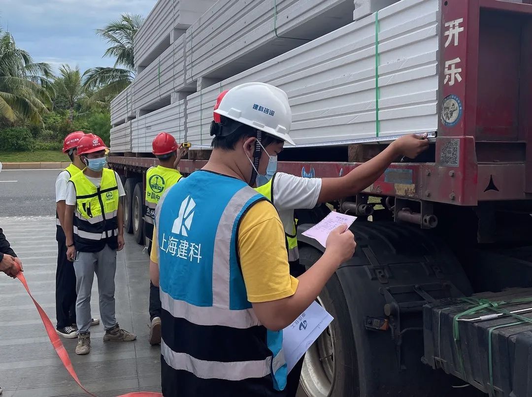 “经过江东新区管理局积极协调,为我们项目办理了‘海口市临时性全域管控车辆通行证’,使材料进场得到了保证,外幕墙单元体顺利运抵现场。”