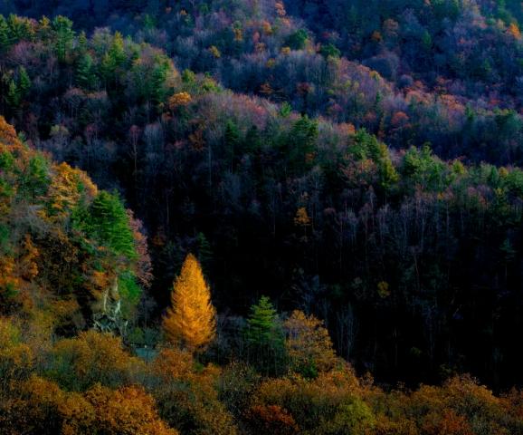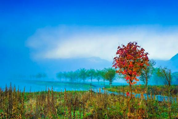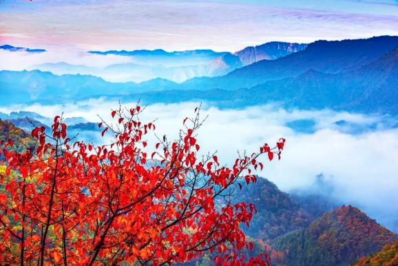 一枝独秀秋天的神农架可谓是一副绚丽多彩的油画,天空是湛蓝的,阳光是明媚的、枫叶是火红,银杏是金黄的,松杉是苍翠的,这个巨大的调色盘,在群山逶迤的黛色背景上,组成一幅幅美妙画卷。秋天的神农架,是摄影师追逐的天堂,更是收获诗与画的黄金季。