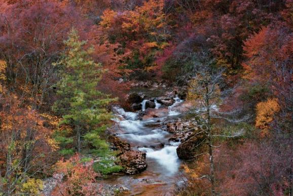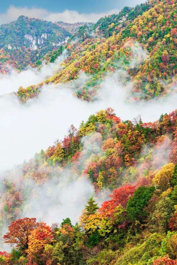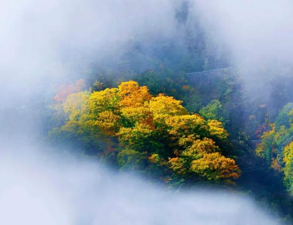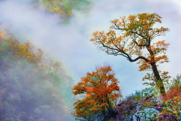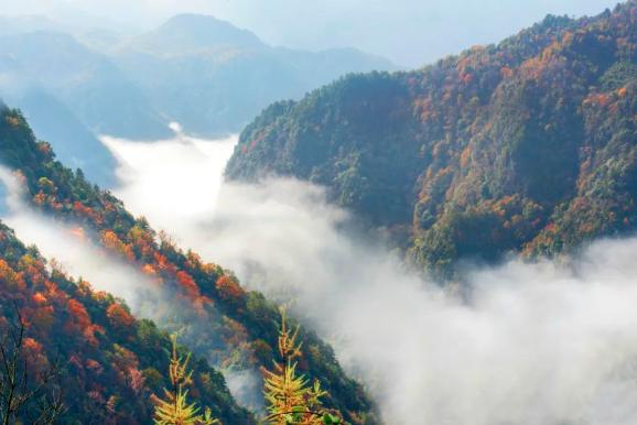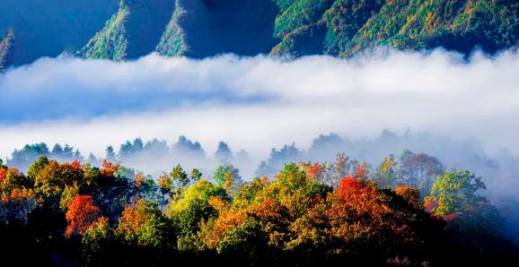 秋天的神农架,是上帝的调色板,是传说中的神仙世界!在这里,神秘莫测的云雾与山、水、树、石融合在一起,你会分不清哪里是梦,哪里是现实。漫山遍野的绚烂,加上中间隐藏的瀑布,朦胧迷离,让秋天多了一份神韵,一份仙气。