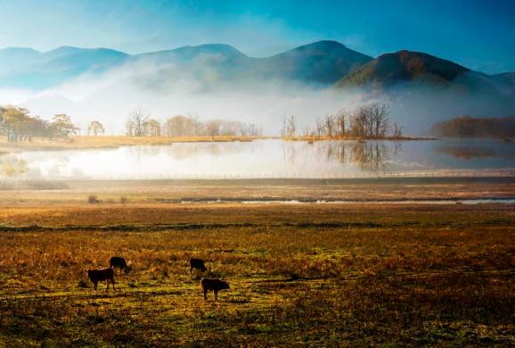 晚霞照云海神农架的秋色,照见了湖与光的曼妙共舞。在神农架景区诸多景点之中,大九湖是一个让去过的人能念念不忘的地方。这片被群山环抱、地势开阔、山水相依的万亩湿地更是仙气氤氲。每天早上日出前后几个小时这里湖面水气迷漫象开了锅的水,山上则是万紫千红层林尽染,在朝霞的照射下山体轮廓分明线条优美,湖面云气呈冷暖对比不是仙景胜似仙景,是国内外摄影大咖追捧的打卡地。