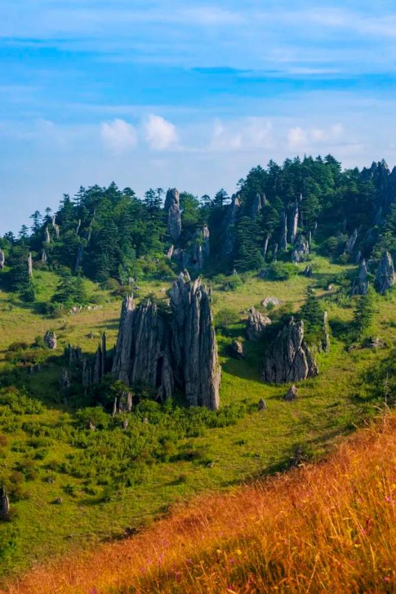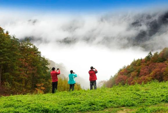 神农架进入秋季最佳摄影创作和观赏时间是每年9月下旬至10月中旬。从神农架的谷底到山巅接近2700米落差,五大植被带,千叶万树,色彩纷呈。秋天的景色从神农顶蔓延开来,一路美到底。漫山遍野是色彩斑斓的红叶,浓墨重彩,美不胜收。五彩丛林与蓝天、白云、草甸、湖泊汇聚在一起,如同一幅美丽画卷。