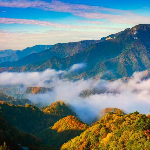 神农架之于秋色,是斑斓的色彩,是绚烂的画意,是引上碧霄的诗情。受特殊的地理因素影响,这里山峦叠嶂,大片原始森林和原始次生林、灌木丛高低错落、相辅相生,构成“远近高低各不同”的奇特美景。