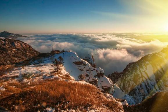 秋水韵随着海拔的增高,周围的景物变了颜色,又是另一番意境。抬头看山间云蒸霞蔚,四野凋零之景笼盖,仿佛这里的秋已经走到了尾声。唯有远处依稀可见的红叶林,脚边坡梁上的雏菊和不知名的野芳,延续着山腰下的秋意,给人以恰到好处的温暖。