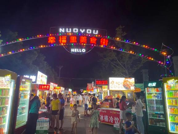 夜幕降临,高新森林公园幸福里美食街华灯初上,热闹非凡。高新区将夜市摊位进行统一规划,为摊贩提供了规范的经营场所。