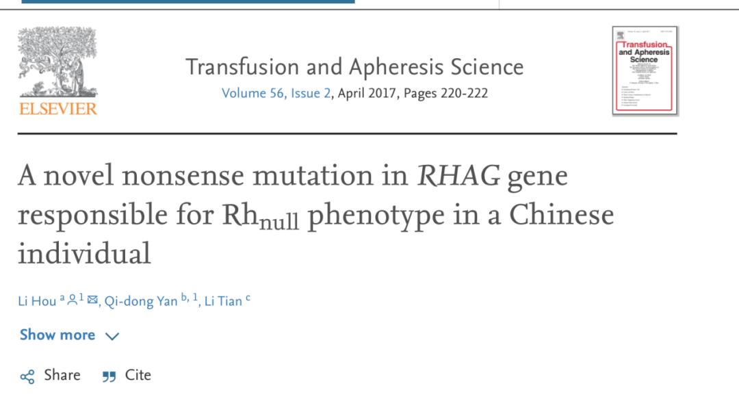 此前,来自中国医学科学院的科学家分别于2011年和2016年发表了两篇论文,详细分析了一位中国RhNull个体的血液,以探索导致RhNull血型的遗传学特征。