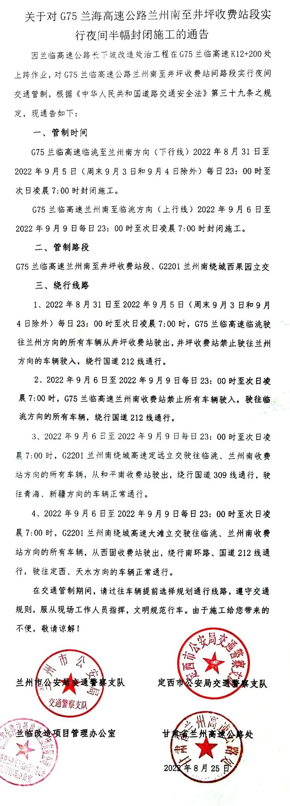 原标题:《明日!G75兰海高速公路兰州南至井坪收费站段实行夜间半幅封闭施工》