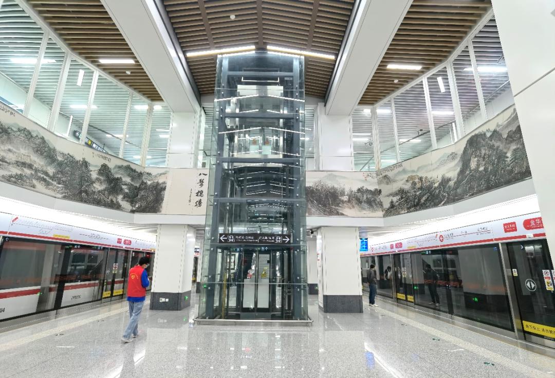 高架站台层采用混凝土屋面,素雅简约的装修风格也是本线的一大特点。半封闭装配式电缆支架遮阳罩、地下盾构区间预埋滑槽技术、高分子复合区间疏散平台及扶手、城轨云平台架构、水冷SVG无功补偿装置、光纤互联型消防电话、装配式冷冻站、一体式冷水机组、磁悬浮冷水机组……一桩桩新技术、新方法、新设备的创新运用,让金义东不仅有颜值,更成为一条科技感十足的“创新样板”线路。