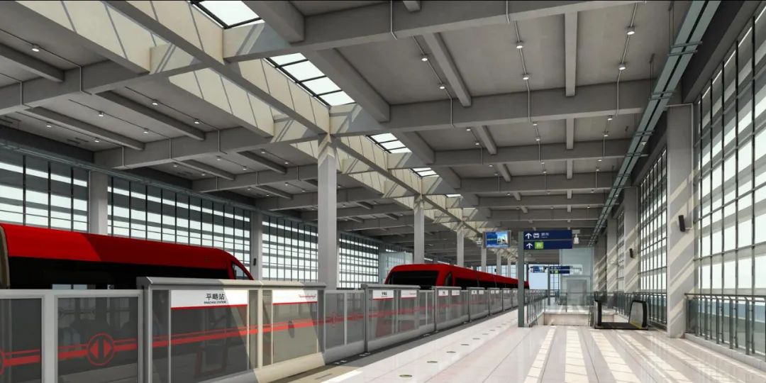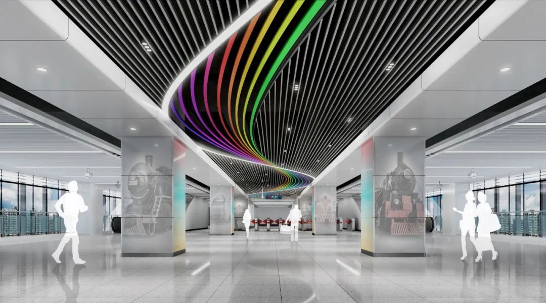 综保区站建筑造型取意于动感时尚的现代轨道列车形态,动势十足,打造地标性轨道交通建筑。