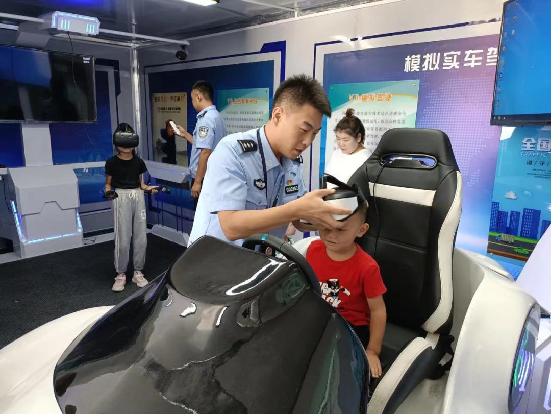 高速交警五支队二大队民警邀请辖区高速公路沿线村庄部分家长和学生走进警营,走进交通安全体验馆,以寓教于乐的方式为前来参加活动的家长和学生普及了高速公路行车安全知识。学生们通过VR眼镜切身体验过马路时闯红灯、酒醉驾、毒驾、疲劳驾驶带来的危害。