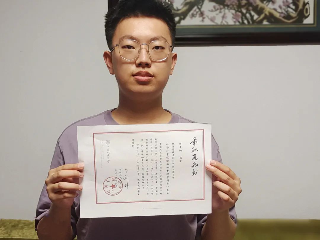 ■ 录取感言:从仰望北大到考入北大,一路走来,我克服了无数困难。收到录取通知书这一刻,我心潮澎湃。感谢父母、老师的教导和支持。未来,我会脚踏实地,奋勇拼搏。