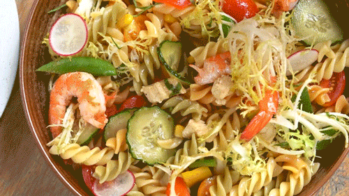 ▲鲜虾番茄意面沙拉