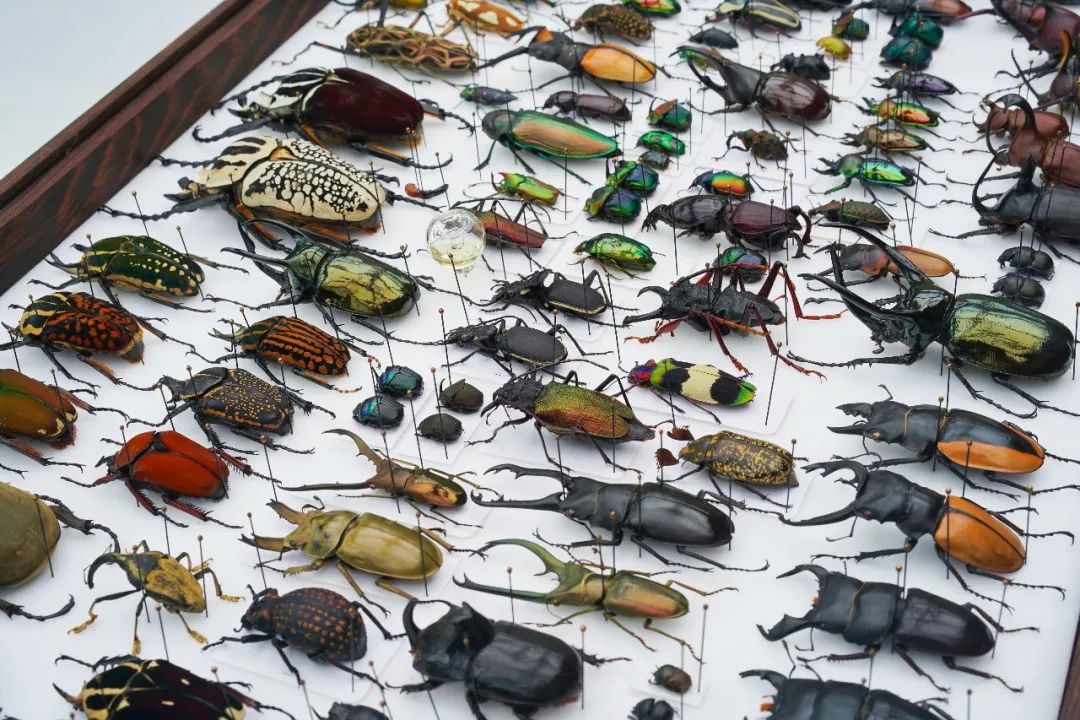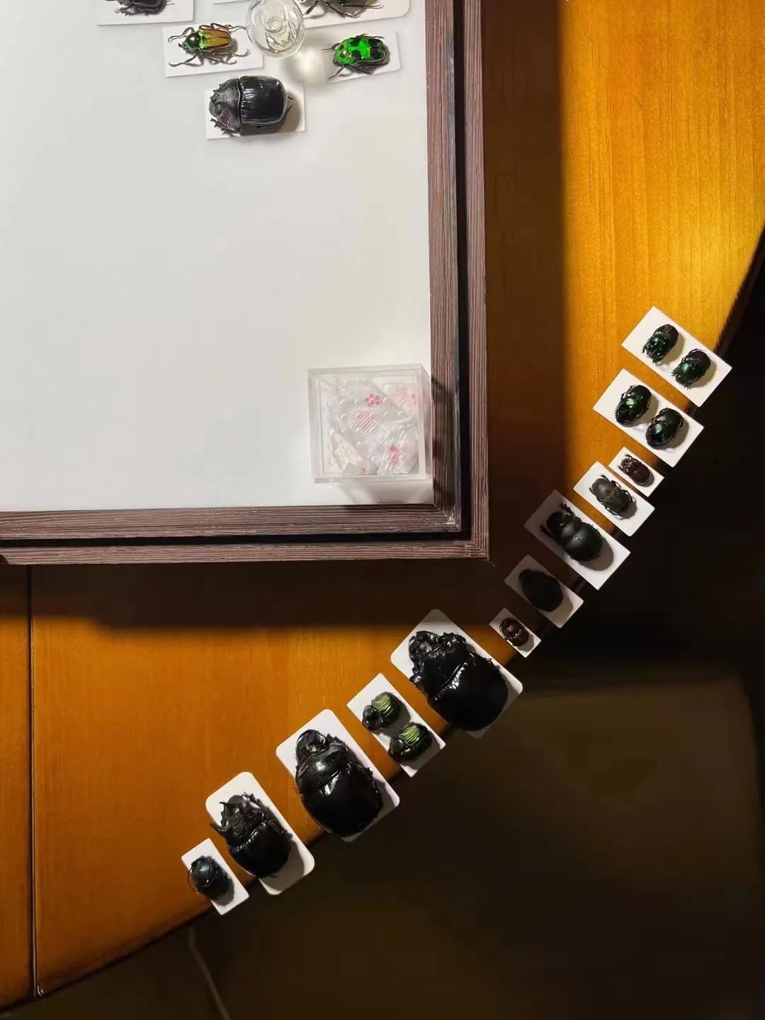 蜣螂标本越到后面他就越觉得,昆虫的世界太博大精深了。比如,单是屎壳郎所属的鞘翅目金龟甲科,全球记载有近16500种,中国记载约230种,许多具有金属光泽,看上去十分漂亮。