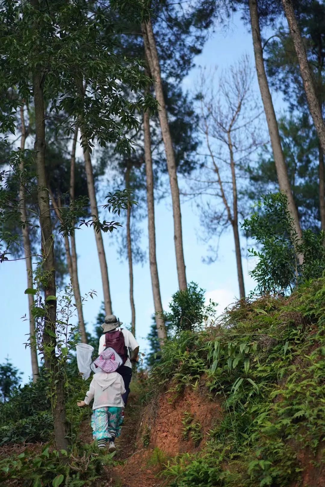 除了在家研究昆虫,一家人时常会安排观察昆虫的主题游。做好防护措施,走咯,去山里。