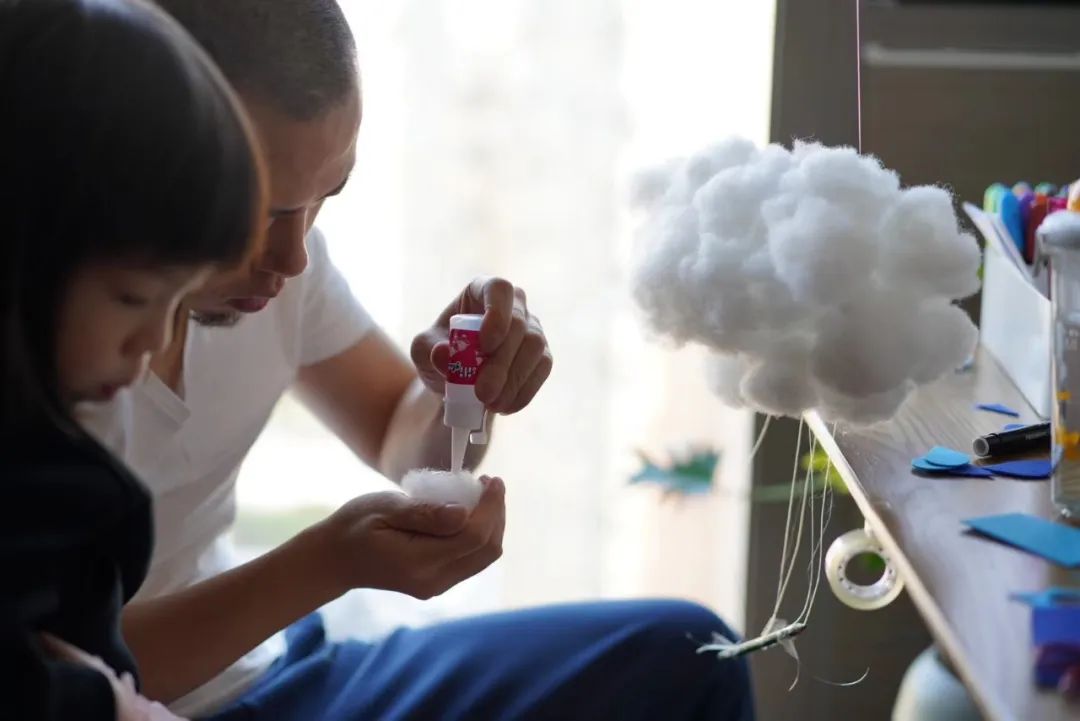 一起制作云灯狸猫的妈妈是全职妈妈,狸猫爸爸觉得自己参与了带娃的40%左右。狸猫目前在学钢琴、舞蹈、画画,他们希望这些可以成为她的表达途径。