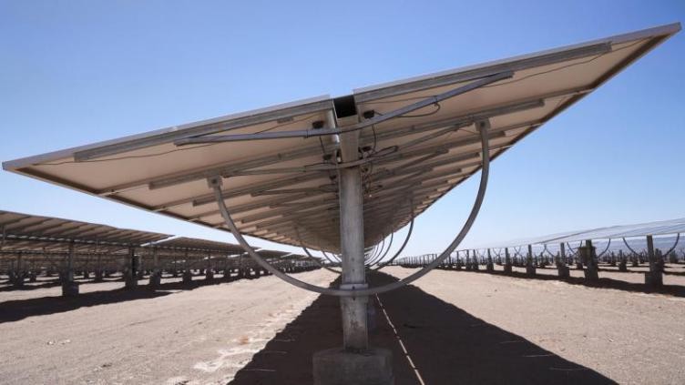 走在“领跑者”项目的园区内,不时会听到一阵阵电机工作的“嗡嗡”声,这是光伏支架跟随太阳而转动的声音。与传统的固定支架相比,采用这些固定可调式支架和水平单轴跟踪式支架,可以让光伏板跟踪对准太阳,最大程度获取阳光在电池面板的垂直分量,日平均发电量得以提高约11%,系统度电成本降低了。