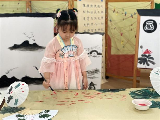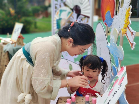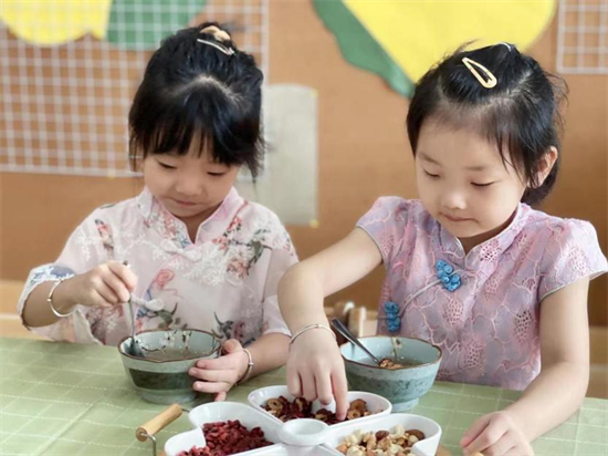 杭州市仙林实验幼儿园凤起园区的孩子们通过趣味游园,追寻宋韵文化密码。孩子们身穿汉服观点茶,品茶香;剥莲子,制茶垫;绿豆糕,尝宋食;画伞扇,绘童梦。大家还体验了一把蹴鞠、下棋、投壶、套圈等宋朝热门小游戏,在欢声笑语中,一颗热爱传统文化的种子悄然在心底发芽!