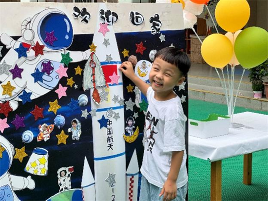 武林幼儿园的孩子们在浩瀚的星空板上,印上了自己最美的梦想印记,点亮了每一颗星星,圆上了他们的航天梦。