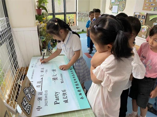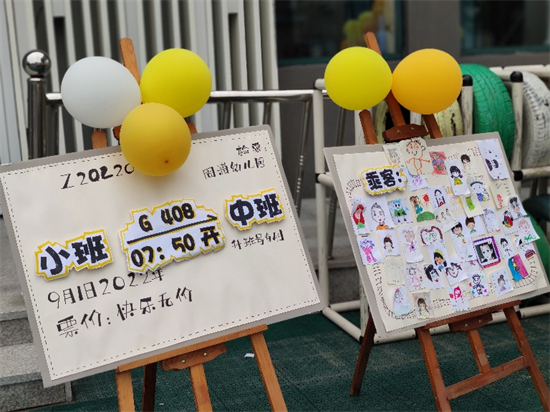 杭州市笕桥花园幼儿园的开学列车起航,中班的“花园伢儿们”在列车票上留下了自己的头像,大班的孩子们则一笔一画写下自己的名字,孩子们手持车票在老师的带领下,去找属于自己班的教室,去发现升班带来的变化。