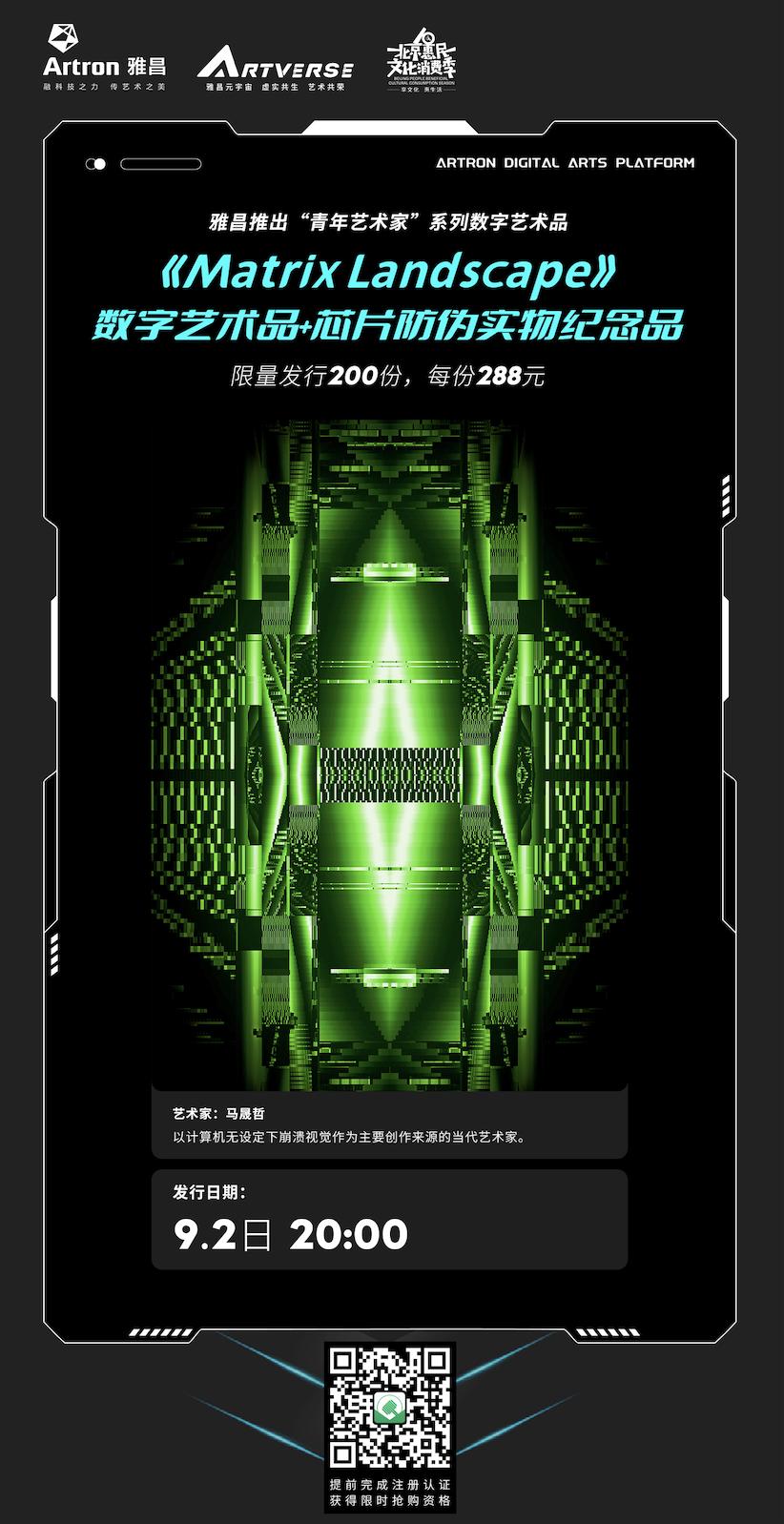 明晚20点,雅昌数字艺术品联合新锐当代艺术家马晟哲,独家发售其数字艺术品:《Matrix Landscape-6》、