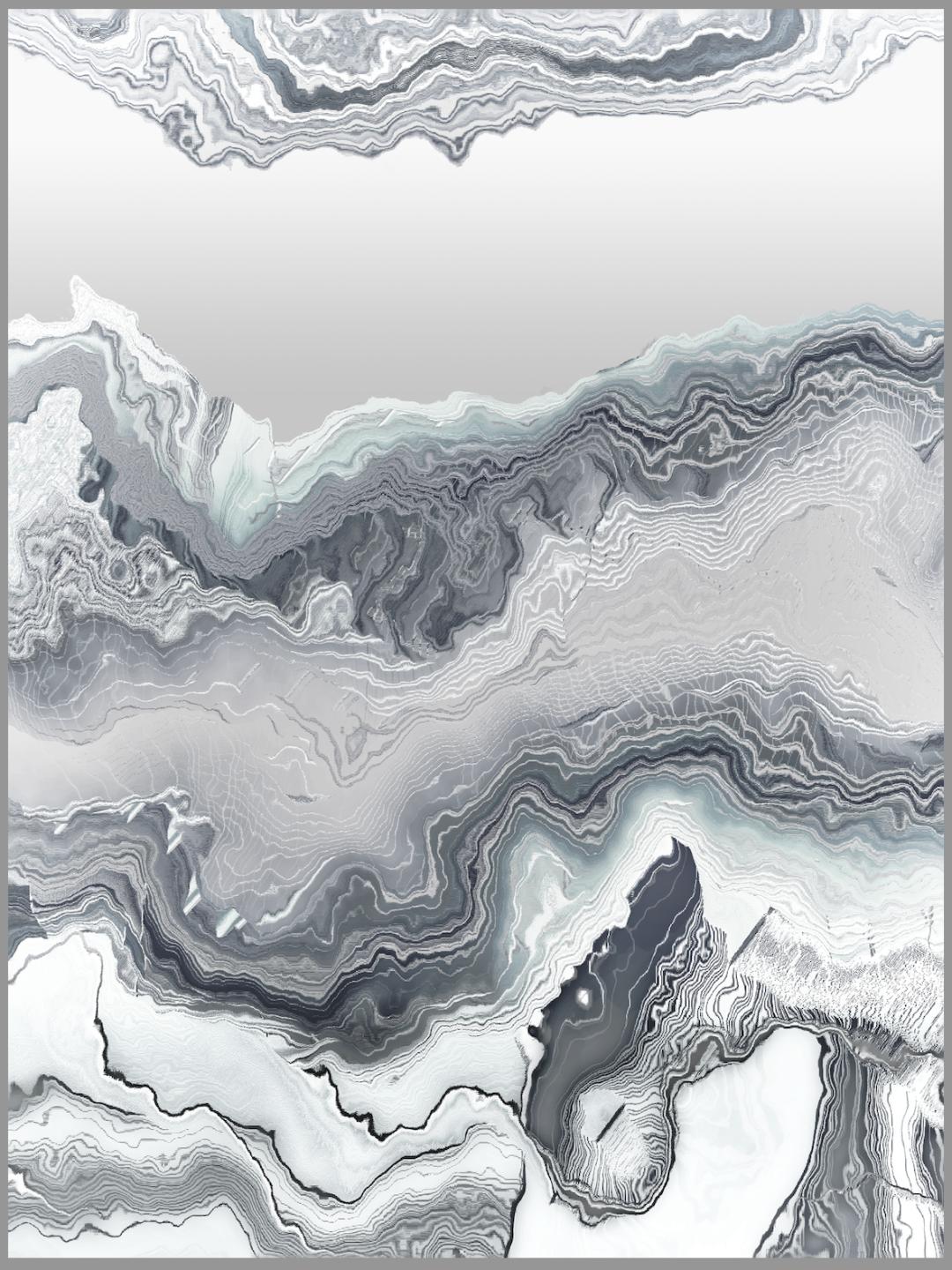 马晟哲充满抽象性和数字感的创作产生干他与计算机设备间的交流、博弈和协作。他利用计算机因负荷过载、错误操作等原因产生的随机性乱码图像进行转译与再创造。DiaitalShanshui系列则尝试运用数字介质来构建中国艺术语境中的“卧游空间”。基于机器“意志”所诞生的无序冬像,重新塑造了山脉和水波的肌理。