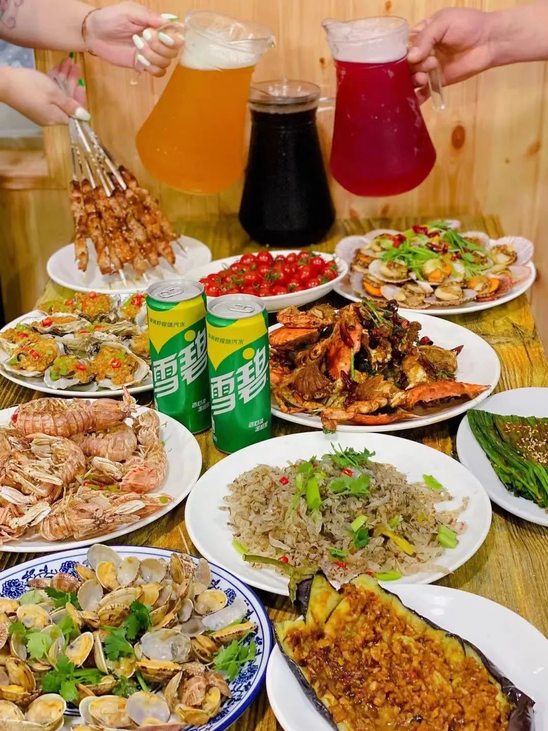 C位出道的爆炒蛤蜊、香醇浓郁的葱烧海参、一口入魂的海鲜疙瘩汤,还有蟹子、鲅鱼、虾虎、八鮹、海蛎子、蛏子、海螺……这里的海鲜美食只有你想不到,没有你吃不到。