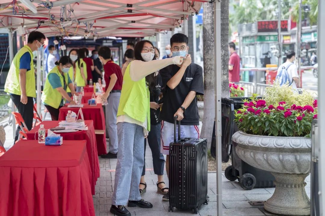 校园里,处处可以看到身穿亮色马甲的志愿者们穿梭在校门、报到点、宿舍楼,热情地迎接来自天南海北的新生。来自人文与法学学院2020级汉语言文学专业的梁远良便是其中的一员,他的工作是协助新生进行报到、搬运行李上楼。谈及印象最深的事,他笑着说:“有个大家庭来送新生报到,全家老少齐上阵。我帮他们在校门口拍了合照,定格住这特殊的瞬间。希望几年后,他们再次看到照片能够会心一笑。”对于即将开始大学生活的师弟师妹们,他送上了美好的祝福:“希望他们在学校可以感受到家庭的温暖,把学校当成自己的另一个家。”
