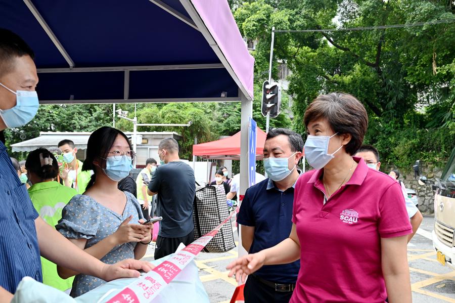 在学校西南门、启林南等报到现场,刘雅红与新生亲切交流,仔细询问新生来校途中的情况,并对防疫流程环节进行逐一检查,听取了相关部门负责人的情况介绍,与现场工作人员及学生志愿者深入交流,嘱咐大家在做好自身防护的同时,为新同学提供热情周到服务。