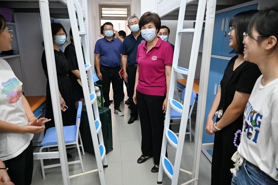 “你们是哪里人?来学校习不习惯?有什么意见多和我们提!”在启林南、燕山区学生公寓楼的新生宿舍,刘雅红与部分本科与博士生新生亲切交谈,送去学校的关心慰问,并叮嘱大家要严格遵守学校相关防疫规定,切实做好个人防护,遇到困难及时与学校和老师反映沟通。