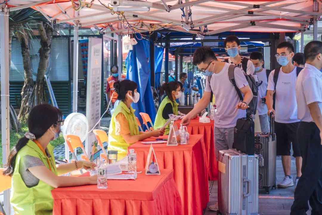报到的几天晴雨交加、高温持续,但迎新氛围依然浓厚、热度不减:学校在各学生社区设立综合服务咨询点,组织千名志愿者在新生宿舍区开展形式多样、细致入微的迎新服务工作。各报到处还设置了“绿色通道”,安排人员提供相关资助政策的咨询。此外,校内免费报到接驳车也如约等候,循环接送学生,为学生出行保驾护航。各部门、学院通力配合开展工作,确保学生平稳、有序、安全来校。